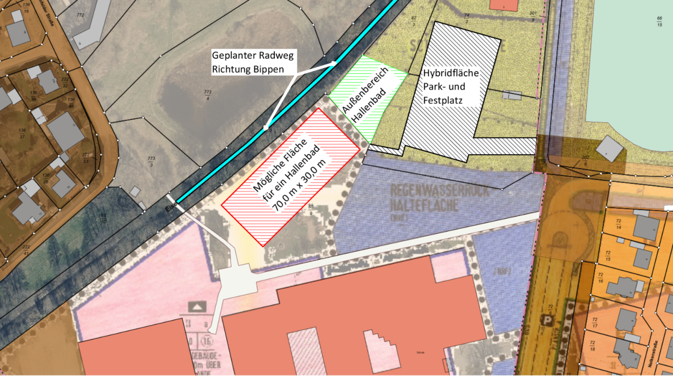 Der Entwurf zeigt klar: Der Platz für ein Hallenbad ist vorhanden. Damit dieses Projekt umgesetzt werden kann, müssen die Bebauungspläne jetzt angepasst werden und damit die planungsrechtlichen Voraussetzungen schaffen.